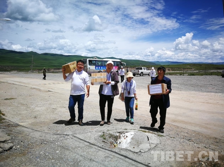 圖為2018年企業(yè)愛心志愿者前往瑪曲縣貧困群眾家,發(fā)放一對(duì)一幫扶因病返貧家庭的生活物資