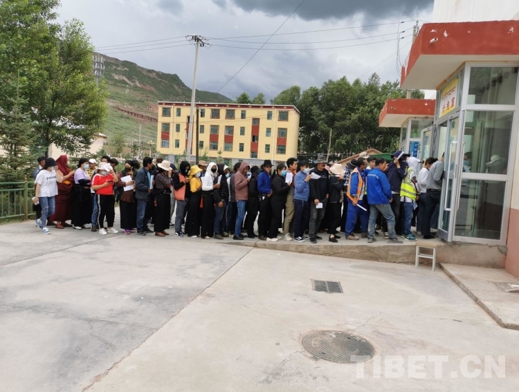 圖為果洛藏族自治州瑪沁縣拉加鎮(zhèn)衛(wèi)生院排隊(duì)等候義診的當(dāng)?shù)厝罕?/p>