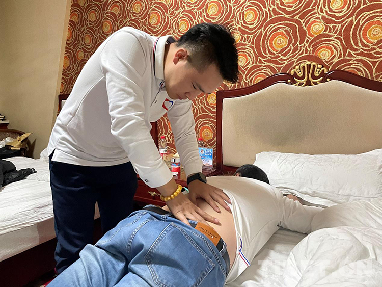 圖為常有才為團(tuán)隊(duì)成員進(jìn)行針灸治療