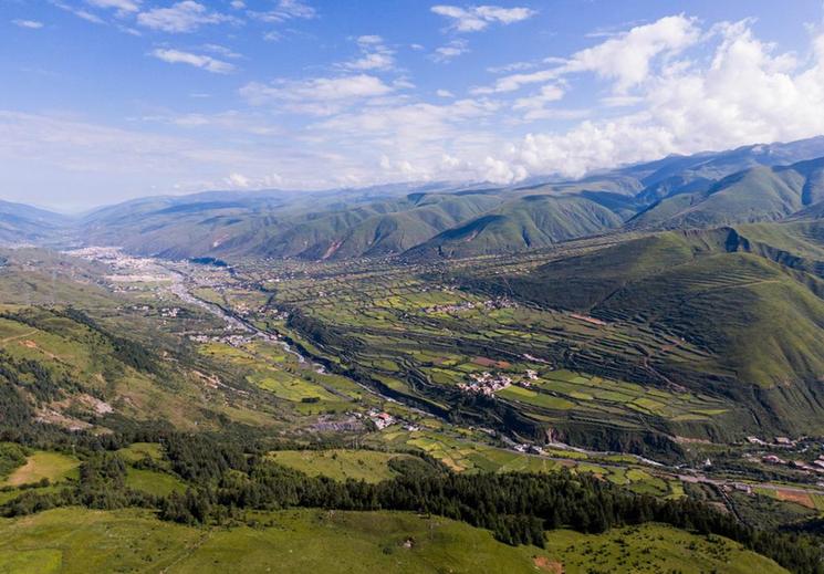 在道孚縣鮮水鎮(zhèn),俯瞰格西河谷地帶風(fēng)光(7月25日攝,無人機(jī)照片)。新華社記者 江宏景 攝
