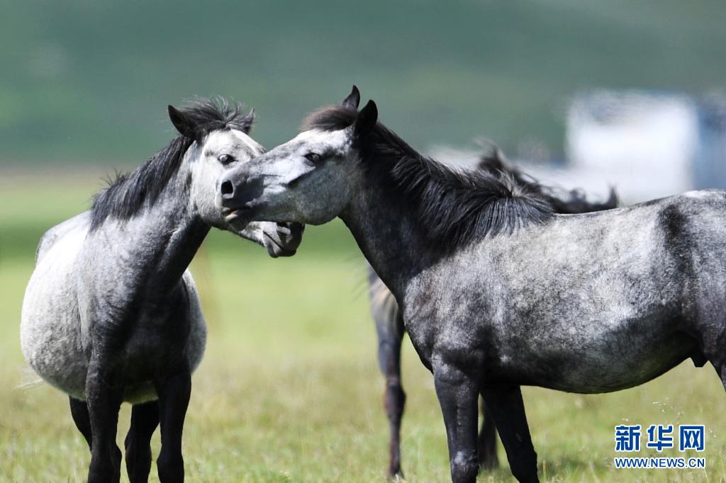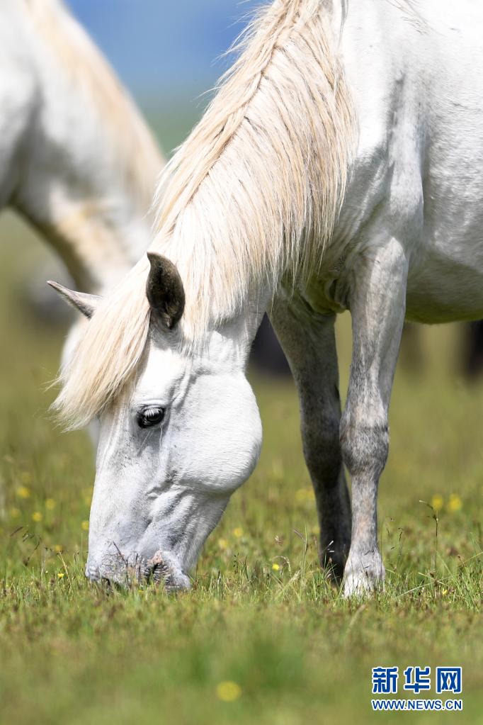 這是7月15日在甘肅瑪曲縣河曲馬場(chǎng)拍攝的河曲馬。新華社記者 陳斌 攝
