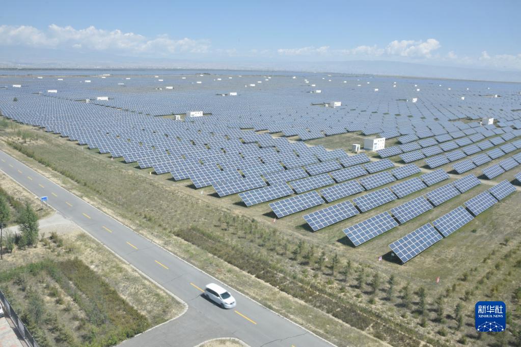 這是9月1日拍攝的位于青海省海南藏族自治州共和縣光伏產(chǎn)業(yè)園內(nèi)的光伏發(fā)電項(xiàng)目。新華社記者 陳凱 攝