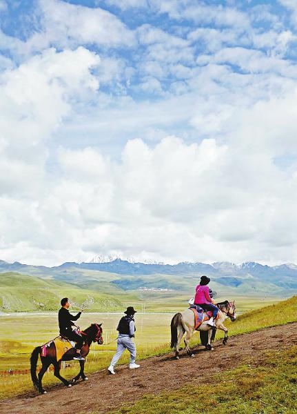 在塔公草原騎馬,是游客最為向往的事情。四川日報全媒體記者 華小峰 攝