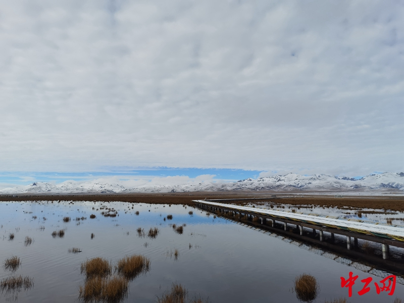 10月20日,“母親河畔的中國”采訪團來到位于四川若爾蓋濕地國家級自然保護區(qū)的花湖濕地。十月末的若爾蓋縣氣溫已接近零度,遠處山峰銀裝素裹,陽光從低沉的云朵中一瀉千里,照亮了靜謐的花湖濕地。
