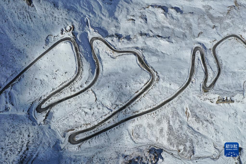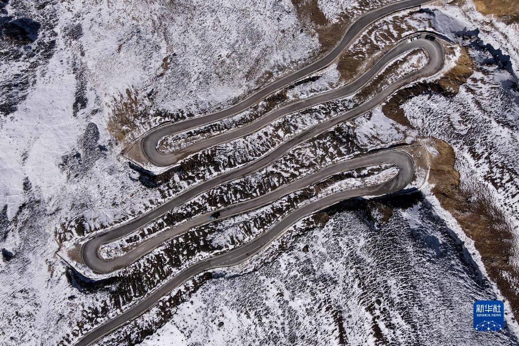 這是四川省甘孜藏族自治州巴塘縣境內(nèi)的通往藏巴拉雪山埡口的公路(10月23日攝,無人機全景照片)。新華社記者 胥冰潔 攝