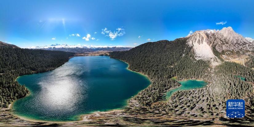這是10月24日在四川甘孜巴塘縣措普溝景區(qū)內(nèi)拍攝的措普湖(無(wú)人機(jī)全景照片)。新華社記者 胥冰潔 攝