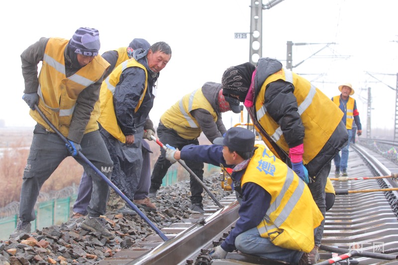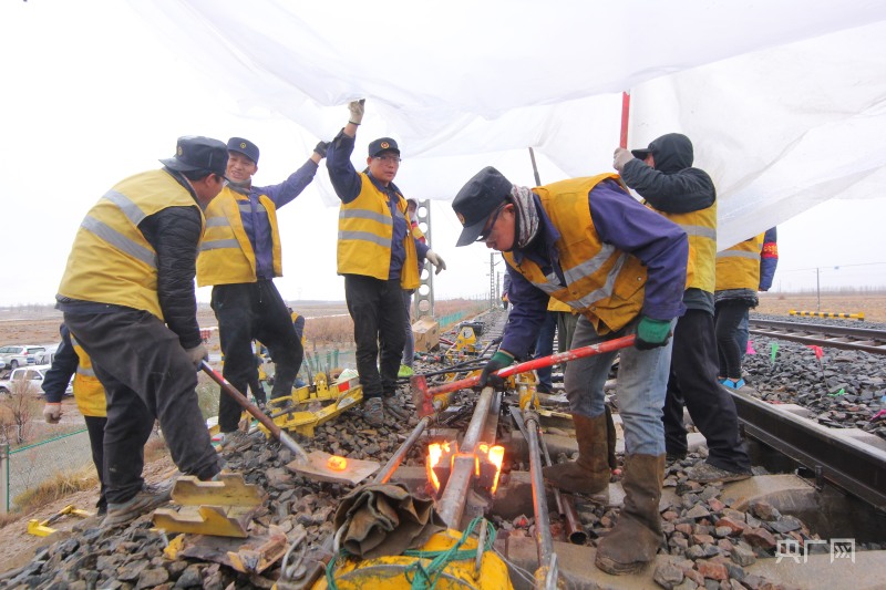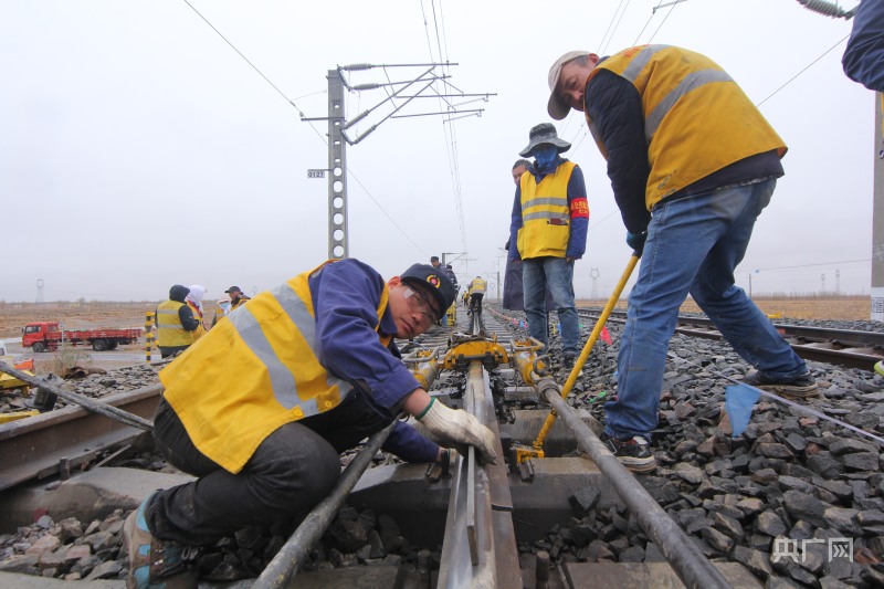 深秋時節(jié),在青海省海西蒙古族藏族自治州,巴音河畔的德令哈市雨雪飄揚。在鄰近德令哈站的鐵路區(qū)間上,170余人正在火熱工作中。
