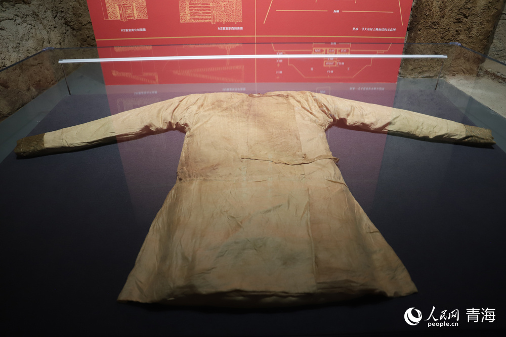 黃地聯(lián)珠團窠對龍紋綾衣(都蘭縣熱水墓群出土)。人民網(wǎng) 楊啟紅攝