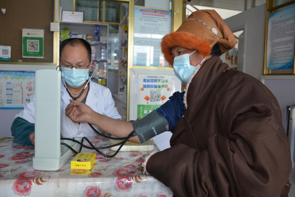 在一旁的復康診所內,日洛正在給生病的孫子買藥?!靶『⒆影l(fā)熱咳嗽,拿點感冒藥就行,記得一天吃三次?!钡却蠓蛘f罷,日洛又挽起衣袖請大夫給自己量血壓?!霸\所開在家門口,頭疼腦熱買藥方便?,F(xiàn)在生活好了,我也要注意身體,還等著小孫子帶我出去旅游呢?!比章逭f。