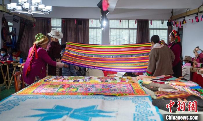 除了自然資源帶來的發(fā)展機(jī)會,涉藏地區(qū)特有的手工藝也成為當(dāng)?shù)匕l(fā)展亮點(diǎn)。在四川甘孜州,說起“九龍藏毯”無人不知。這種藏毯編織技藝以織法獨(dú)、毯面柔軟、經(jīng)久耐用以及明快艷麗的傳統(tǒng)圖案而聞名。