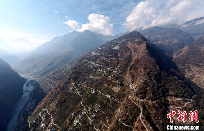航拍雅礱江邊高山峽谷間的九龍魁多鎮(zhèn)。 劉忠俊 攝