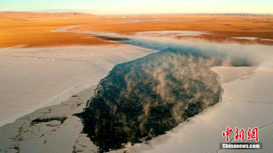在冬日晨曦,初升的暖陽(yáng)下黑馬河水汽升騰,成群的大天鵝宛如仙子沐浴出水,畫面唯美。馬海青 攝