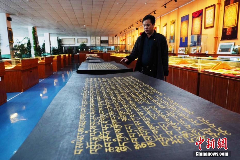 1月18日,青海省黃南藏族自治州尖扎縣非物質(zhì)文化遺產(chǎn)綜合傳習中心負責人才讓多杰介紹即將出售的經(jīng)書。該中心現(xiàn)有50名學員學習藏文書寫、唐卡繪制、藏紙手工制作技藝等。他們在學習、了解豐富多彩的藏族文化知識外,每年還可增收近5萬元人民幣。中新社記者 馬銘言 攝
