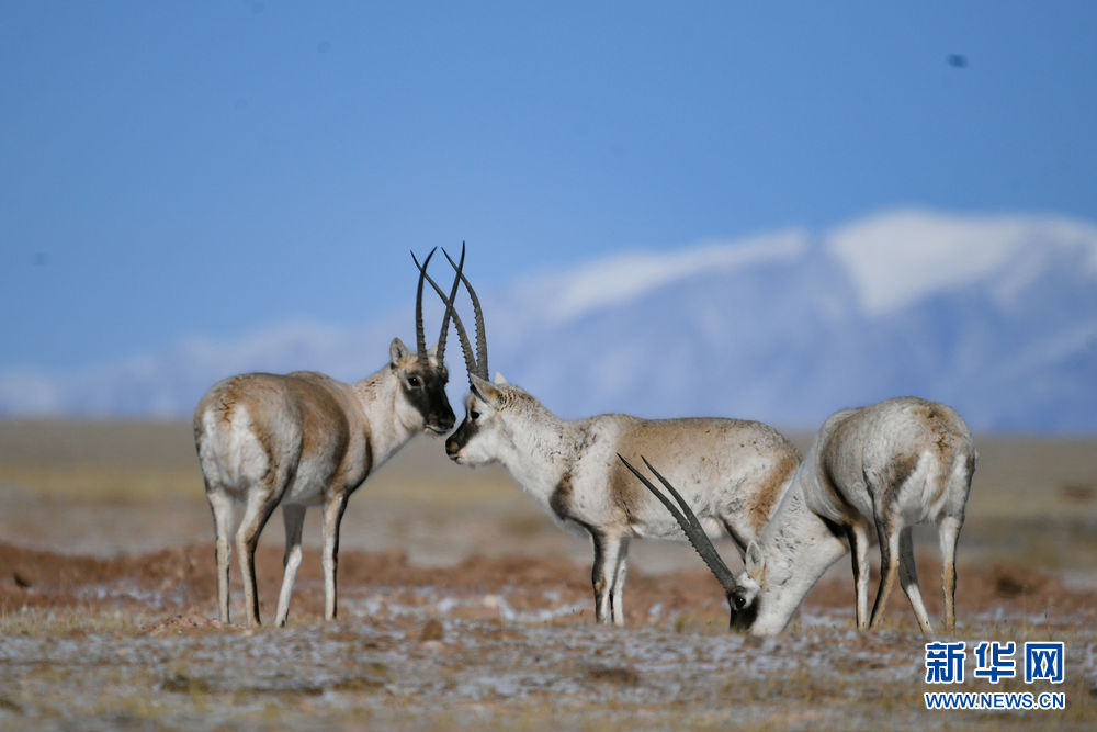 隆冬時(shí)節(jié),藏羚羊、野牦牛、藏野驢等“高原精靈”在可可西里覓食嬉戲??煽晌骼锟偯娣e4.5萬(wàn)平方公里,平均海拔4600米以上,蘊(yùn)藏著豐富的野生動(dòng)物資源。2016年,可可西里國(guó)家級(jí)自然保護(hù)區(qū)整體劃轉(zhuǎn)至三江源國(guó)家公園,成為三江源國(guó)家公園的重要組成部分。