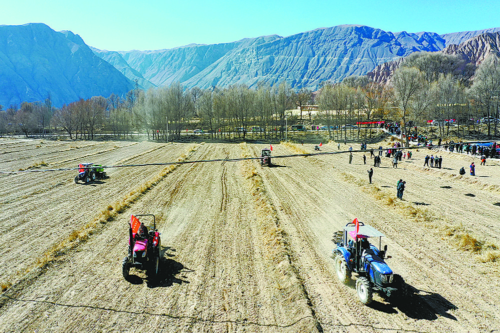 2月24日,走進(jìn)青海省海南藏族自治州貴德縣拉西瓦鎮(zhèn)昨那村,草發(fā)芽枝探頭,乍暖還寒,提鋤頭田間作,播種耕地,一年一度的春耕文化節(jié)正式開啟。