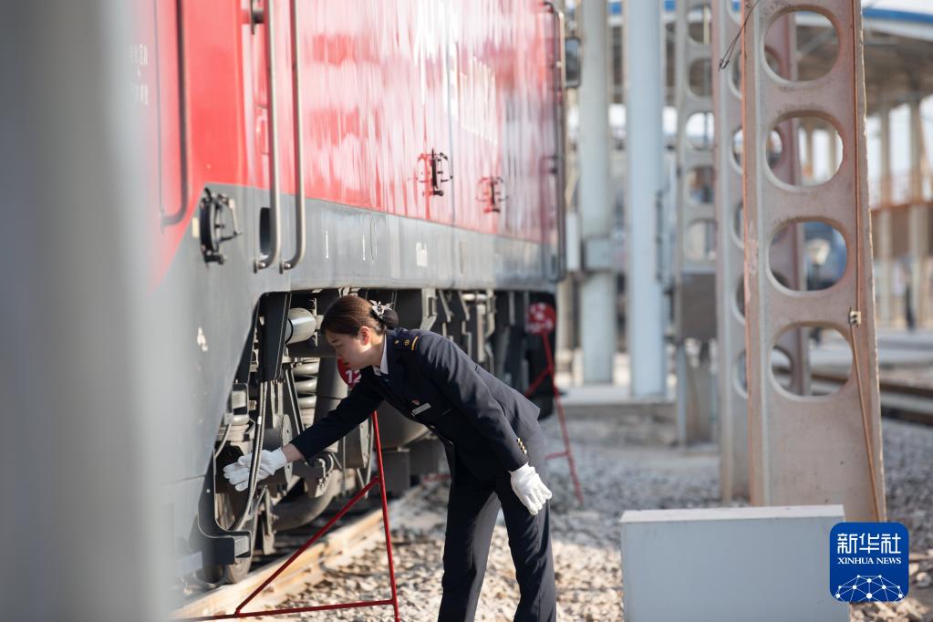 張夢晨在出乘前檢查機(jī)車。馬鵬 攝