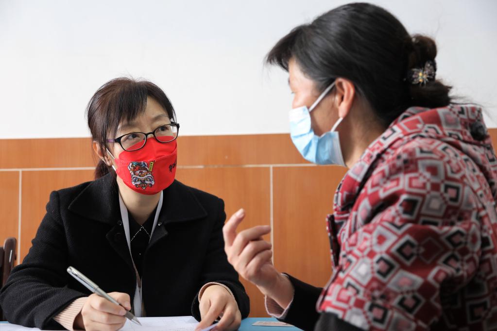 3月9日,在社區(qū)“石榴籽家園”,居民馬應(yīng)洪(右一)在向工作人員咨詢醫(yī)保相關(guān)政策。新華社記者 趙玉和 攝