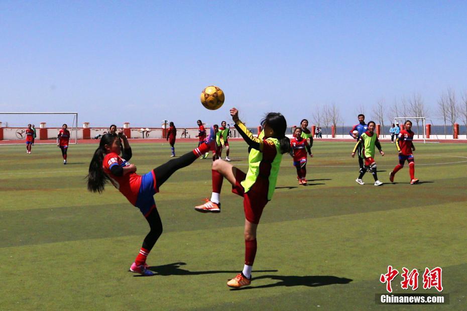 • 青海湖畔的校園女子足球隊(duì) 成員清一色藏族女孩
