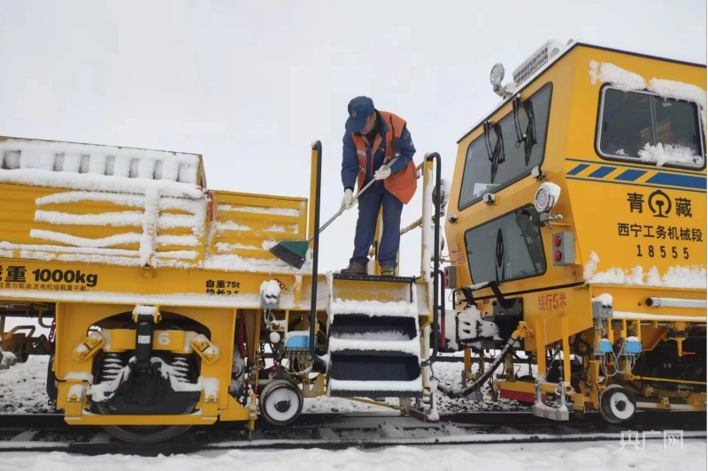 昆侖山上,氣溫驟降,多處施工現(xiàn)場被大雪覆蓋,一片白雪皚皚。為確保施工順利進行,近日,西寧工務(wù)機械段維修三車間的職工們開啟了對青藏鐵路格拉線望昆——昆侖山區(qū)間大機搗固施工作業(yè)。西寧工務(wù)機械段維修三車間主任王海峰在施工作業(yè)前,帶領(lǐng)車間職工清理積雪,同時對低溫狀態(tài)易發(fā)生故障的作業(yè)裝置進行針對性保養(yǎng)。“注意腳下積雪濕滑,扶穩(wěn)抓牢,保證自身人身安全?!避囬g副主任張小波提醒說。