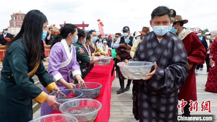 圖為民眾參加青海湖裸鯉增殖放流活動。李雋 攝