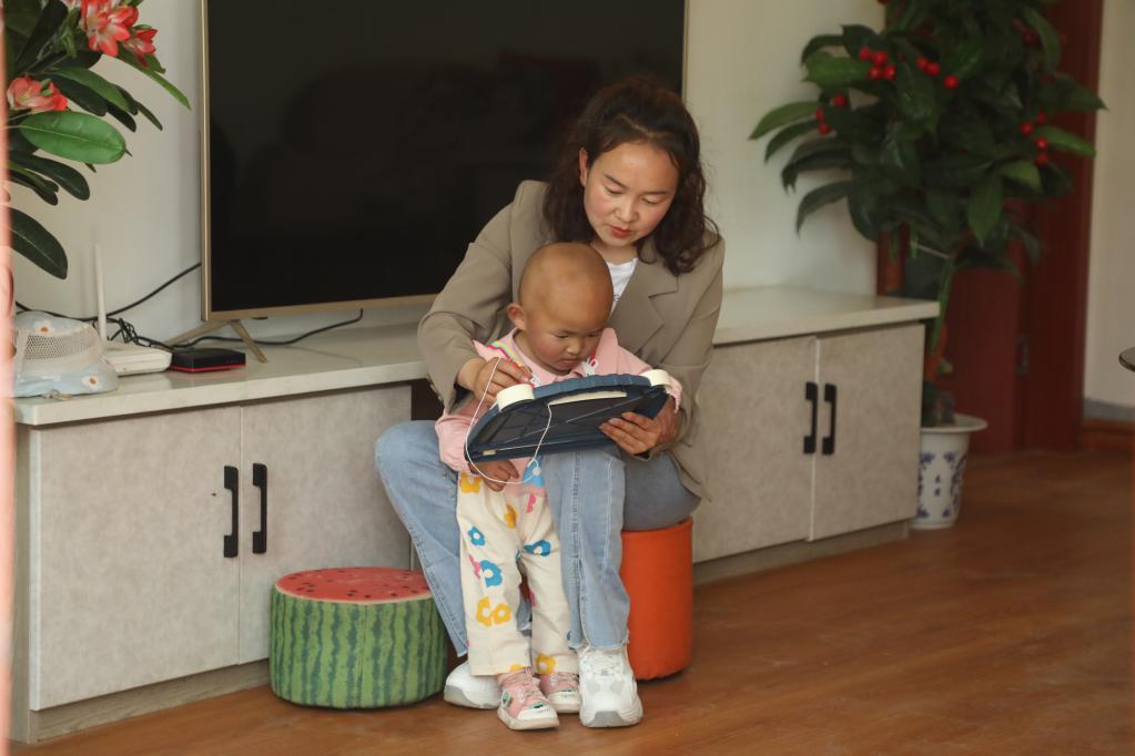 在新康村的新家,楊條女正在陪孩子畫畫。新華社記者 馬莎 攝