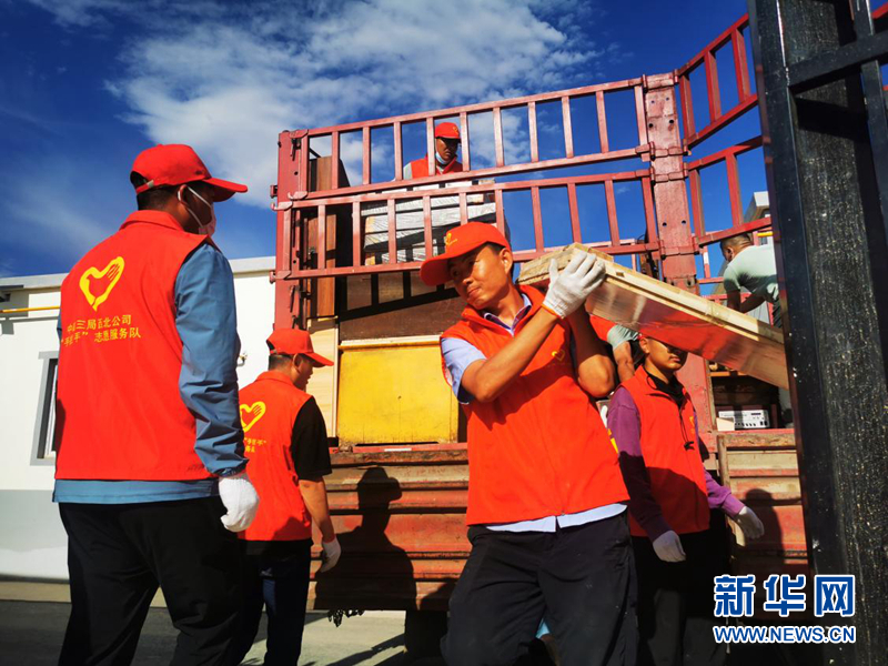 志愿服務(wù)隊(duì)為搬遷群眾搬送物資。(圖片來源:中建三局西北公司)