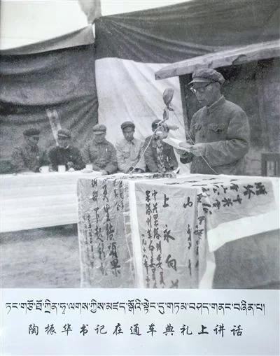 1974年,來自山西永濟(jì)的陶振華轉(zhuǎn)業(yè)到果洛工作,他被安排到瑪沁縣雪山公社擔(dān)任黨委書記。這里地處高原深處,是全縣唯一不通公路的公社。為了讓雪鄉(xiāng)不再與外界隔絕,1975年5月1日,這位身形瘦小的漢族書記和一群身著藏族服飾的干部群眾,拿起鐵锨鎬頭,東雪公路開工了?!罢哪?,沒重傷一人,沒花國(guó)家一分錢,靠著各民族共同艱苦奮斗,打通了雪山第一條公路。如今,當(dāng)年那條老公路早已被新建的花久高速替代,但那條生命線、平安路、團(tuán)結(jié)道所凝結(jié)的精神,至今仍激勵(lì)著干部鄉(xiāng)親們不斷開拓新的幸福之路。”