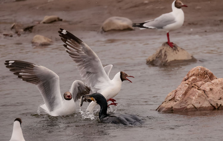 棕頭鷗捕食湟魚。周元峰 攝