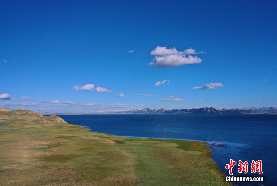 冬格措納湖位于青海省果洛藏族自治州瑪多縣,是一片地處海拔4100多米的淡水湖。夏日的冬格措納湖,湖水湛藍(lán),宛如跌落群山之中的“藍(lán)寶石”。紅、黃、綠色的草灘與湖水相互映襯,美景如畫。圖為航拍冬格措納湖美景。 馬銘言 攝