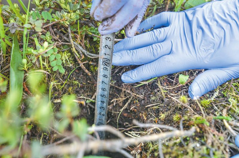 前期的研究表明,海拔越高,增溫速率越明顯。王濤站起身,山對(duì)面的雪山下,海拔4500米的地方,觀測(cè)站還布設(shè)了同樣的增溫設(shè)施?!拔覀兙褪且闱宄@種增溫會(huì)對(duì)土壤碳庫產(chǎn)生什么影響,影響的機(jī)制是什么?!?/p>