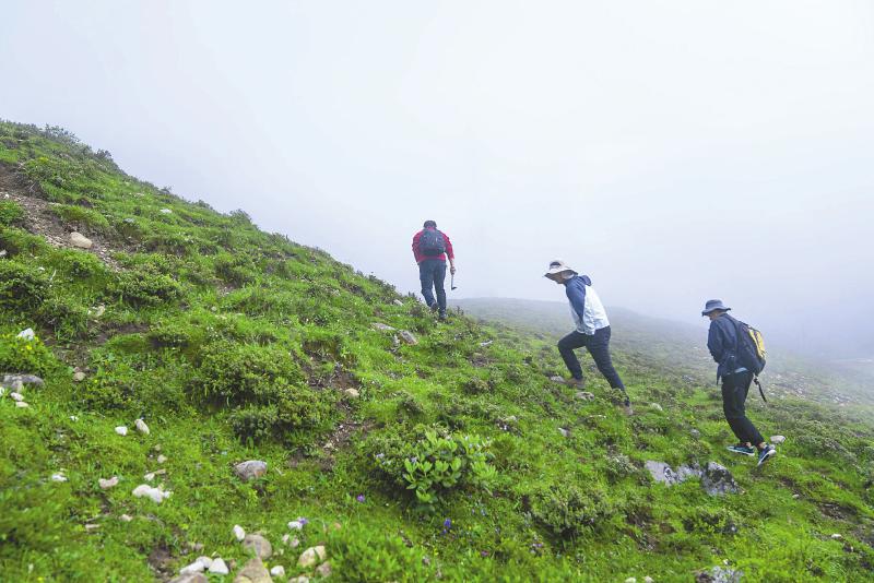 垂直距離只有300米,但密林中的行進(jìn)并不容易。在向?qū)ьI(lǐng)下,王文志和其學(xué)生抵達(dá)了林線處,腳踩松軟的苔蘚,他們展開作業(yè)。