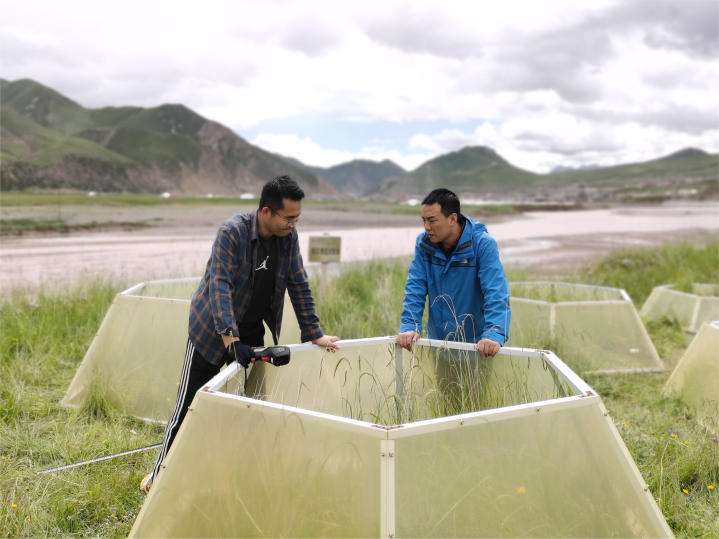 “模擬增溫試驗”是國際上觀測不同增溫狀態(tài)下植物生態(tài)系統(tǒng)變化的主要研究方式。這項實(shí)驗通過在草地上安裝不同高度的溫箱,布設(shè)傳感器觀測箱內(nèi)溫度,模擬形成不同增溫條件,從而分析以高原嵩草為優(yōu)勢種的高寒草甸植被對氣候變暖的響應(yīng)。