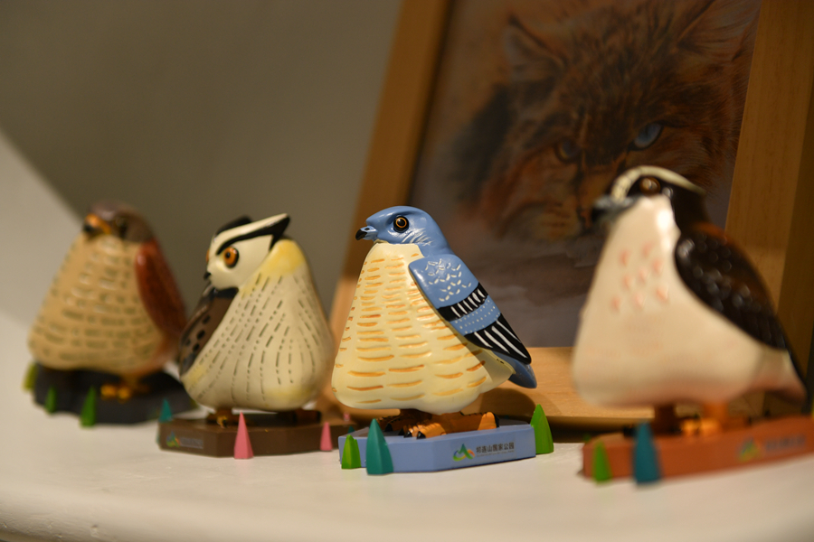 圖為祁連山國(guó)家公園青海片區(qū)展陳中心內(nèi)展出的特色文創(chuàng)產(chǎn)品。