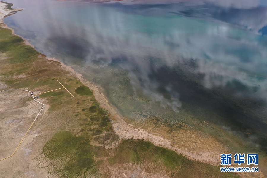 航拍阿拉克湖國(guó)家濕地公園一角。