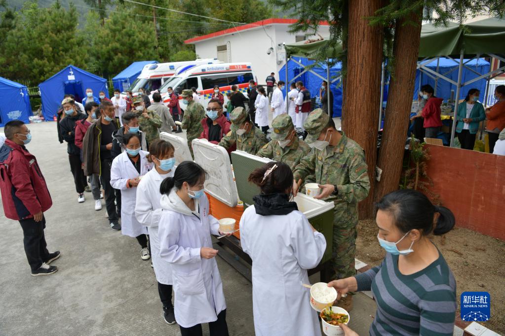 9月6日,西藏軍區(qū)川藏兵站部某大站救援隊抵達(dá)瀘定縣磨西鎮(zhèn),開設(shè)臨時熱食供應(yīng)站為救援人員和受災(zāi)群眾提供保障。新華社發(fā)(任云 攝)