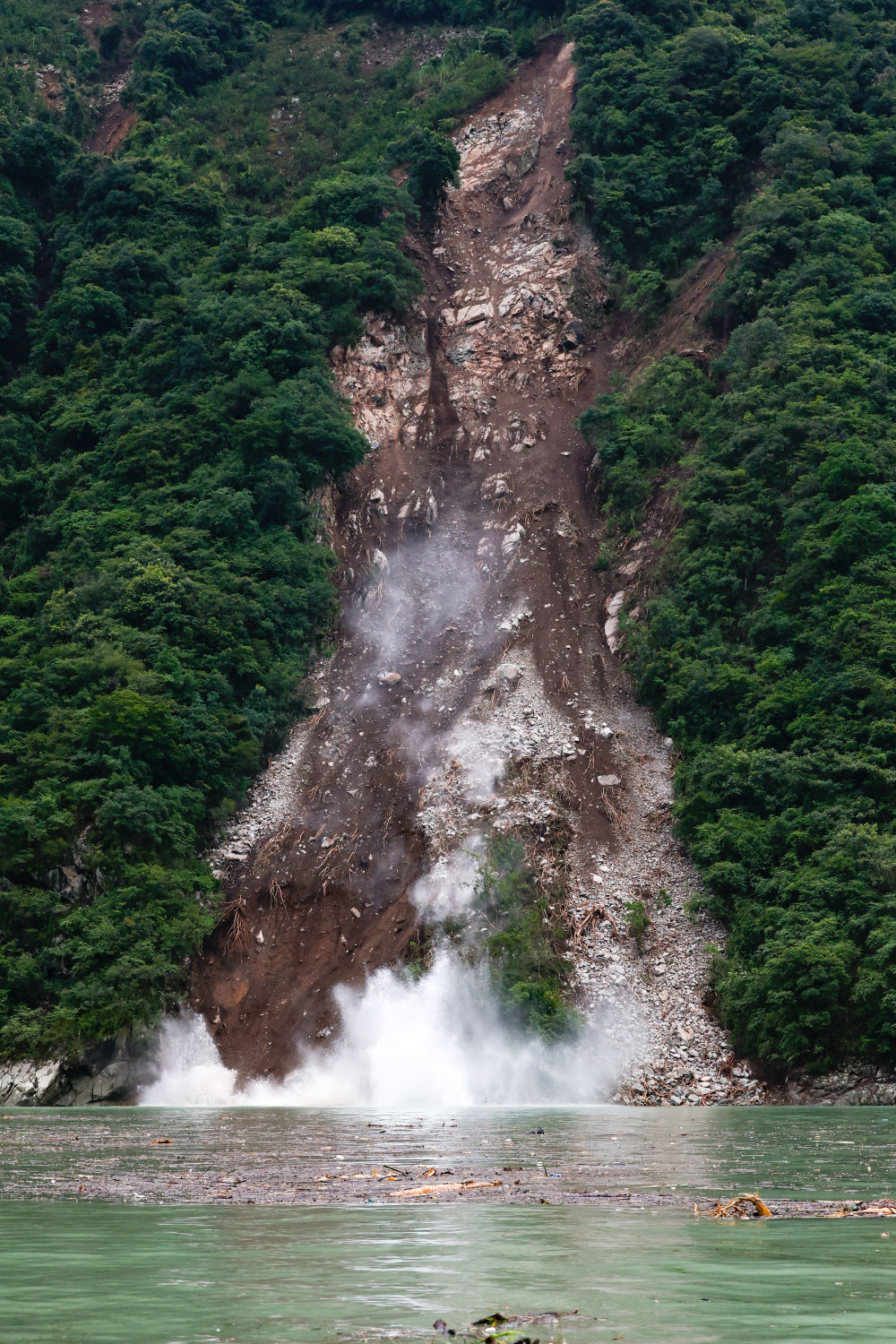 時(shí)間已經(jīng)到了下午3點(diǎn)半,我決定跟著十余個(gè)村民走下山,盡快下山整理照片發(fā)稿。下山路比上山路略好走一些,有時(shí)沿著尚未中斷的山間盤(pán)山公路行走,有時(shí)會(huì)經(jīng)過(guò)之前村民踩出的小路,有時(shí)只能自己開(kāi)路向前。兩個(gè)來(lái)小時(shí)之后,坐在返回得妥鎮(zhèn)的橡皮艇上,我懸著的心才終于落下。
