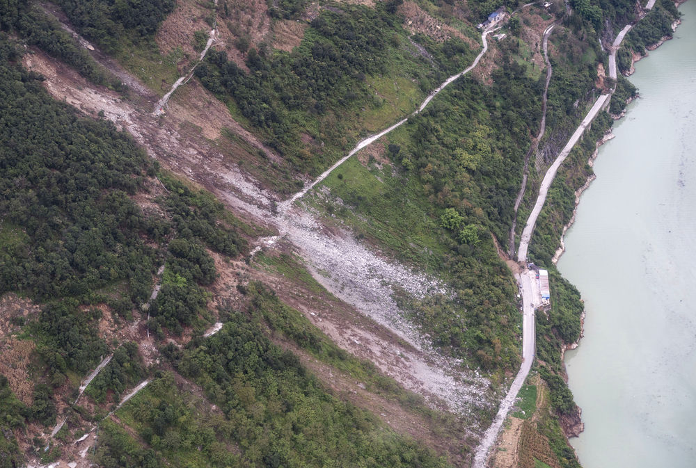 9月6日拍攝的得妥鎮(zhèn)附近的山谷,地震導(dǎo)致了山體垮塌。