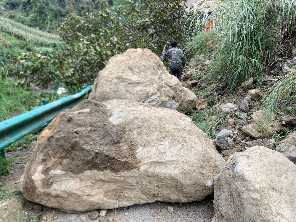 9月6日凌晨,通往得妥鎮(zhèn)的公路上,隨處可見(jiàn)震山體塌方后落下的碎石。