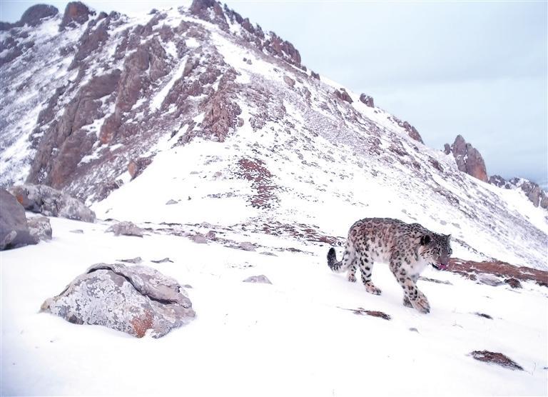 紅外線相機監(jiān)測到的國家一級保護動物雪豹。甘南州生態(tài)環(huán)境局供圖
