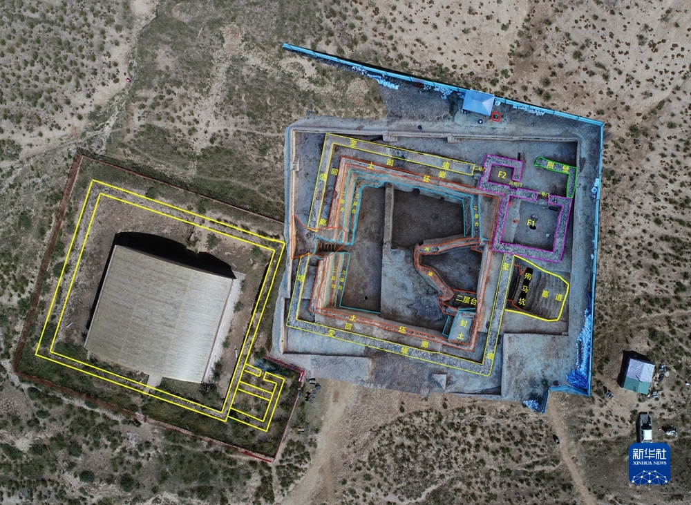 “2022年的工作重點是對2007QM1進(jìn)行保護(hù)性清理發(fā)掘?!敝袊鐣茖W(xué)院考古研究所副研究員韓建華介紹,目前2007QM1清理發(fā)掘工作已經(jīng)完成。據(jù)介紹,2007QM1位于2018血渭一號墓西側(cè),緊挨2018血渭一號墓西塋墻。早年已發(fā)掘出塋墻、地上建筑、墓道、甬道、照墻和墓室,但未公布考古資料。為保護(hù)展示遺址,經(jīng)重新發(fā)掘,確認(rèn)該墓墓園形制和規(guī)模與2018血渭一號墓墓園相似。