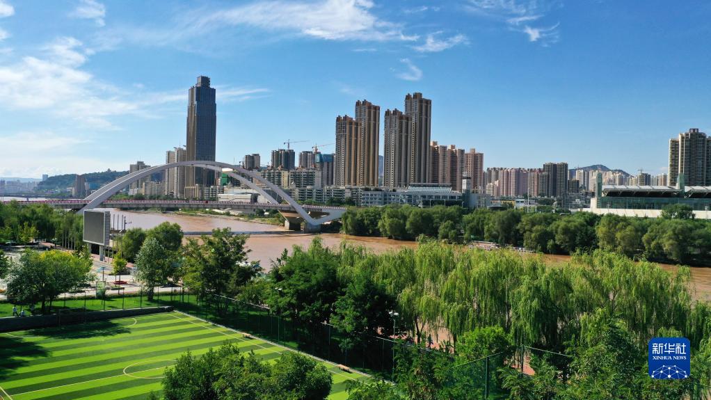 這是在甘肅省蘭州市拍攝的黃河兩岸城市風(fēng)光(9月5日攝,無人機照片)。新華社記者 陳斌 攝