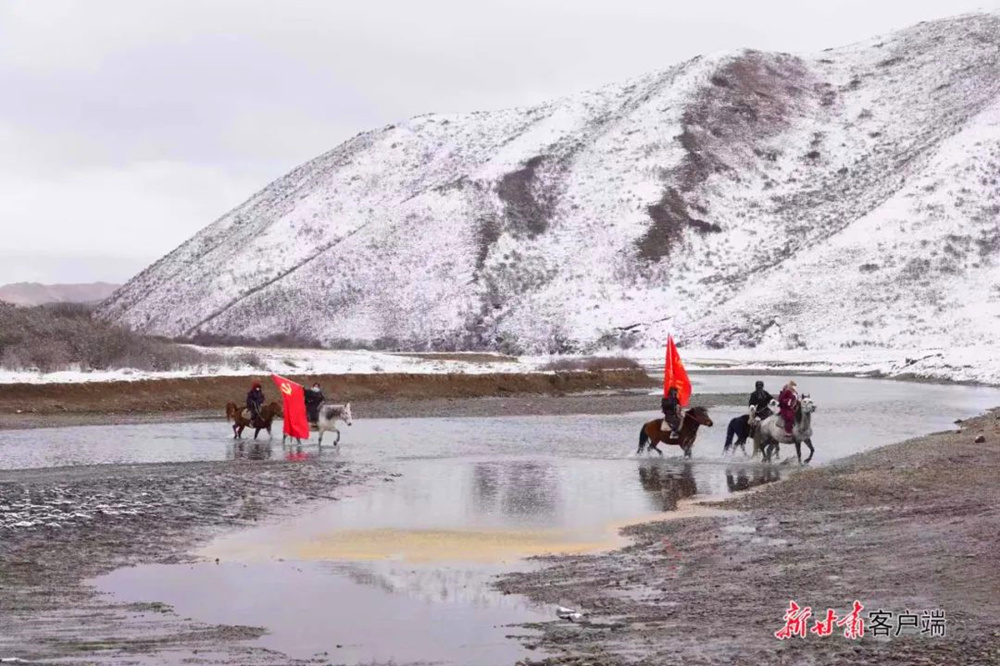 圖為宣講隊(duì)跋山涉水穿梭在各個(gè)牧場(chǎng)