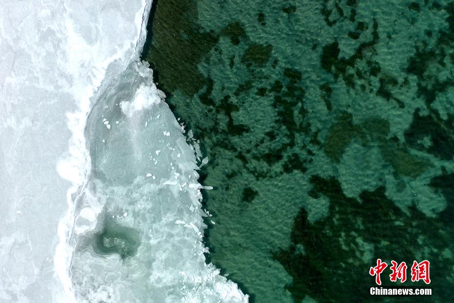 近日,素有“高原藍(lán)寶石”之稱的青海湖開始進(jìn)入冰封期。青海湖水體周邊的零星結(jié)冰,青海湖西部邊緣、北部湖岸區(qū)、鳥島、青海湖斷崖等地出現(xiàn)成片結(jié)冰區(qū)。航拍畫面中可以看到湖心范圍尚有大面積未結(jié)冰區(qū)域。青海湖是中國最大的內(nèi)陸咸水湖。冬日里的青海湖,寧靜而內(nèi)斂。千里冰封,宛如童話世界。封凍的湖面如同破碎的“玉帶”,形成獨(dú)特的景觀。張世偉 攝
