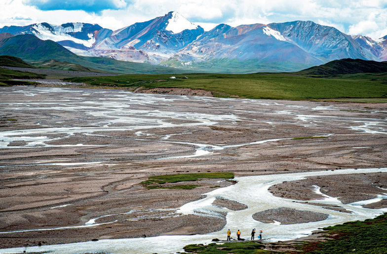 長江科學(xué)院的科考隊(duì)員在長江源區(qū)進(jìn)行科考工作(2022年7月26日攝)肖藝九 攝 / 本刊