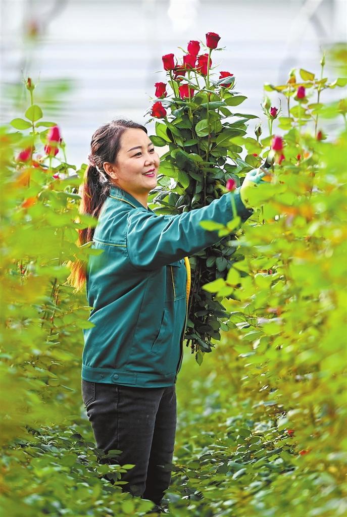 時值寒冬,與新康村一街之隔的蘭州新區(qū)現(xiàn)代農(nóng)業(yè)雙創(chuàng)基地的花卉溫室里溫暖如春,韓紅明正麻利地修剪著玫瑰花,“一個月將近4000元的工資,又在家門口上班,搬來之前我做夢都沒想到過?!表n紅明在老家平時只會做做農(nóng)活,搬遷后很擔(dān)心自己的就業(yè)問題。在新康村黨總支的幫助下,韓紅明搬來不久就被介紹到現(xiàn)代農(nóng)業(yè)雙創(chuàng)基地溫室內(nèi)工作,既能掙錢又能照顧老人和孩子。