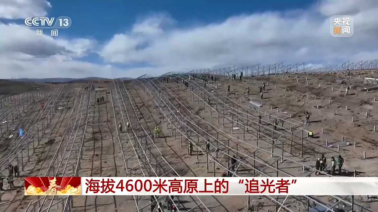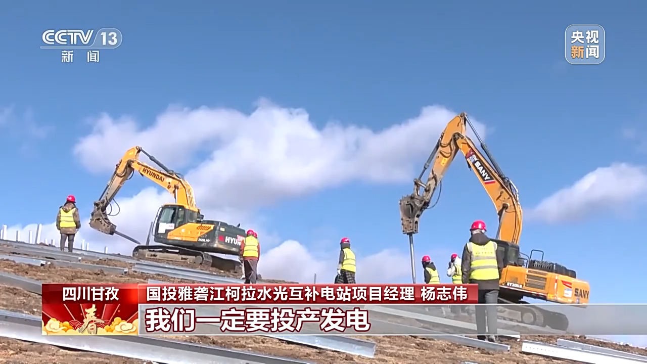 總臺央視記者 古峻嶺:在海拔4600米的柯拉水電光伏互補電站,1000多名建設(shè)者正在加緊施工,他們要在春節(jié)期間把53萬根光伏基礎(chǔ)樁全部施工完成。