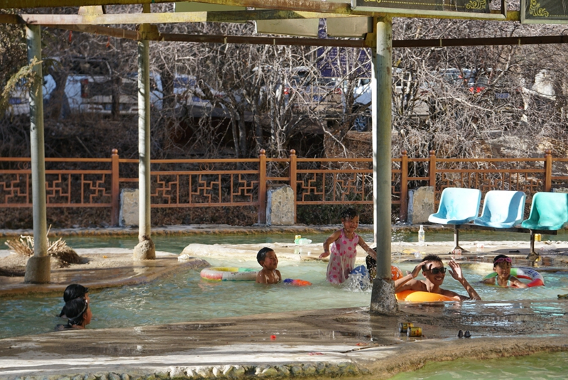 春節(jié)假期,帶上家人、朋友泡個溫泉,成為了不少迪慶人歡度新春必不可少的“儀式”。隨著近幾年“溫泉“經濟的發(fā)展,老百姓泡溫泉幾乎成了家家喜聞樂見的放松方式。大年初五,天生橋就擠滿了前來泡溫泉的老百姓。男女老少,歡聲笑語,享受春節(jié)假日里全家出游的開心與快樂。