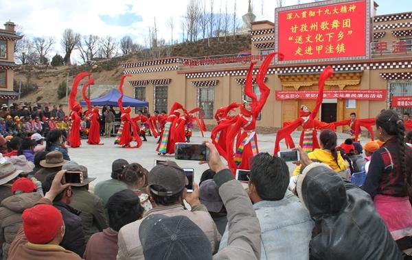 4月13至14日,四川甘孜州歌舞團(tuán)的藝術(shù)家們走進(jìn)理塘縣中木拉鄉(xiāng)和甲洼鎮(zhèn)等地,為2000余藏鄉(xiāng)民眾送去了帶有濃郁藏族風(fēng)情的“文藝大餐”,吸引了許多藏族同胞現(xiàn)場“品味”。[詳細(xì)] -