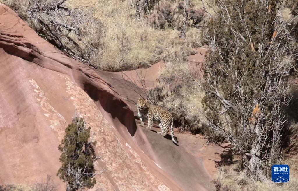 在三江源國(guó)家公園內(nèi)拍攝到的金錢豹。新華社發(fā)