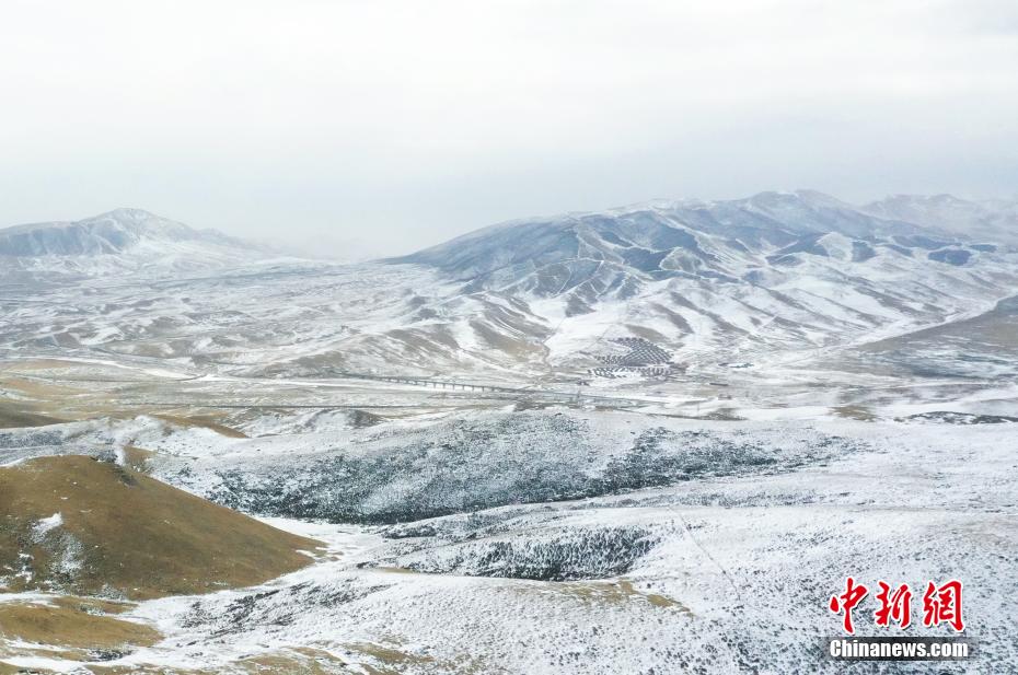 2月17日,航拍位于青海省海北藏族自治州海晏縣,祁連山脈同寶山壯美雪景。一場(chǎng)春雪過后,同寶山連綿的山巒被白雪覆蓋,遠(yuǎn)處的青海湖若隱若現(xiàn),盡顯壯美。